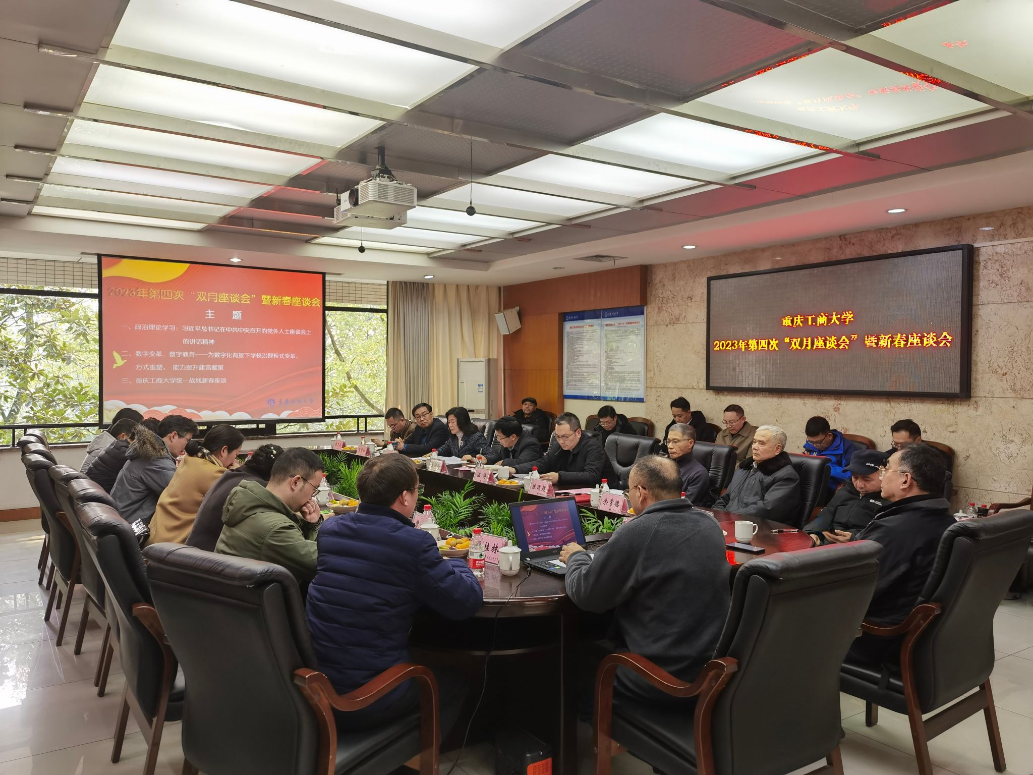 12月27日下午,365官网在厚德楼3019会议室召开统一战线2023年第四次“双月座谈会”暨新春座谈会。本次双月座谈会的主题是:数字变革,数字教育——为数字化背景下学校治理模式变革、方式重塑、能力提升建言献策;统一战线新春座谈。学校党委书记曾维伦,校长温涛,党委副书记兼统战部部长宋豫,党委常委、副校长陈运超;全国政协委员、市区人大代表和政协委员,民主党派中央委员会委员、市委会副主委、区委会副主委、委员;学校各民主党派基层组织、统战团体主要负责人及代表,有关职能部门负责人共30余人参加了会议。会议由宋豫主持。
