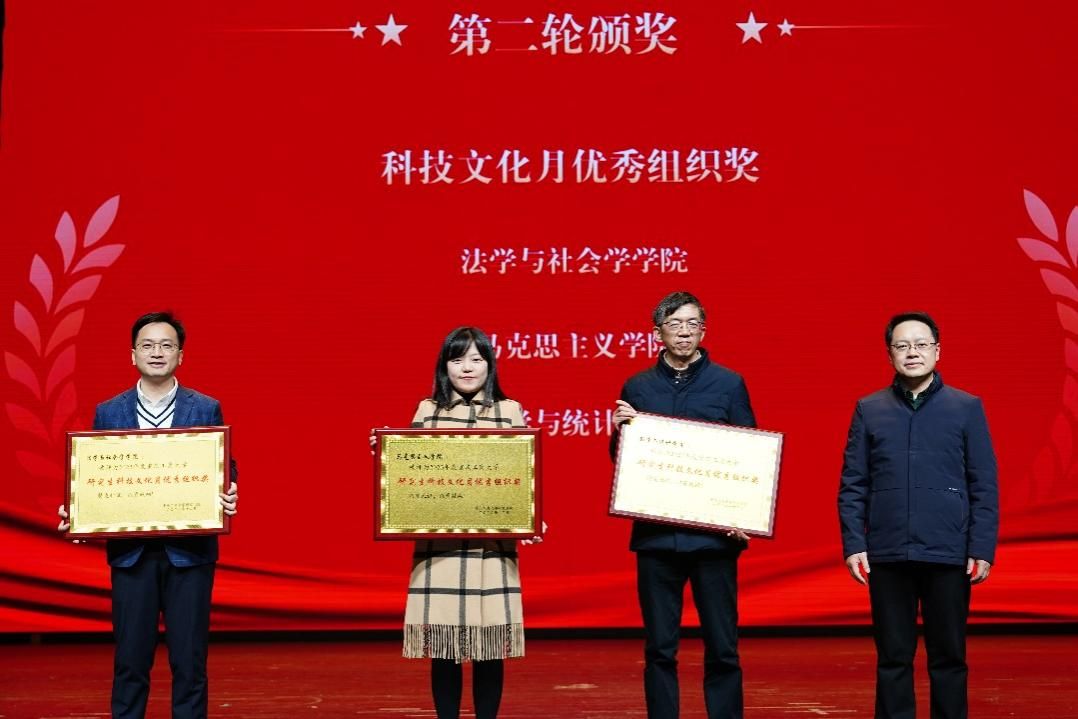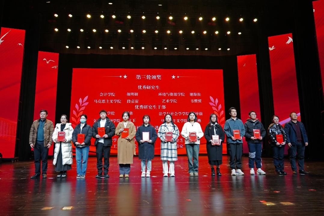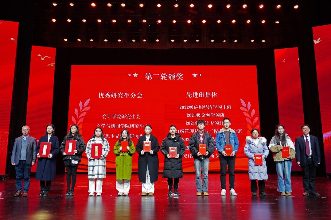 典礼现场,对优秀硕士研究生学业指导教师、优秀硕士学位论文指导教师、学位与研究生教育先进个人、科技文化月优秀组织、优秀研究生分会、先进班集体、优秀研究生、优秀研究生干部、精神文明先进个人等进行了表彰。