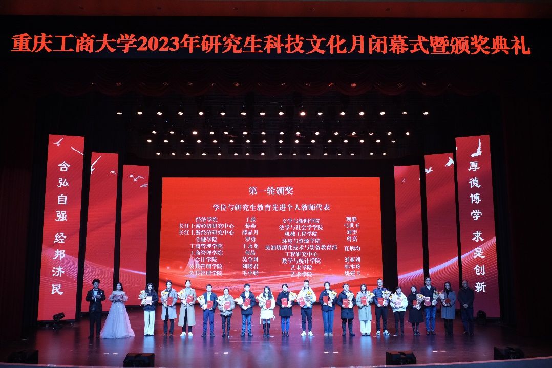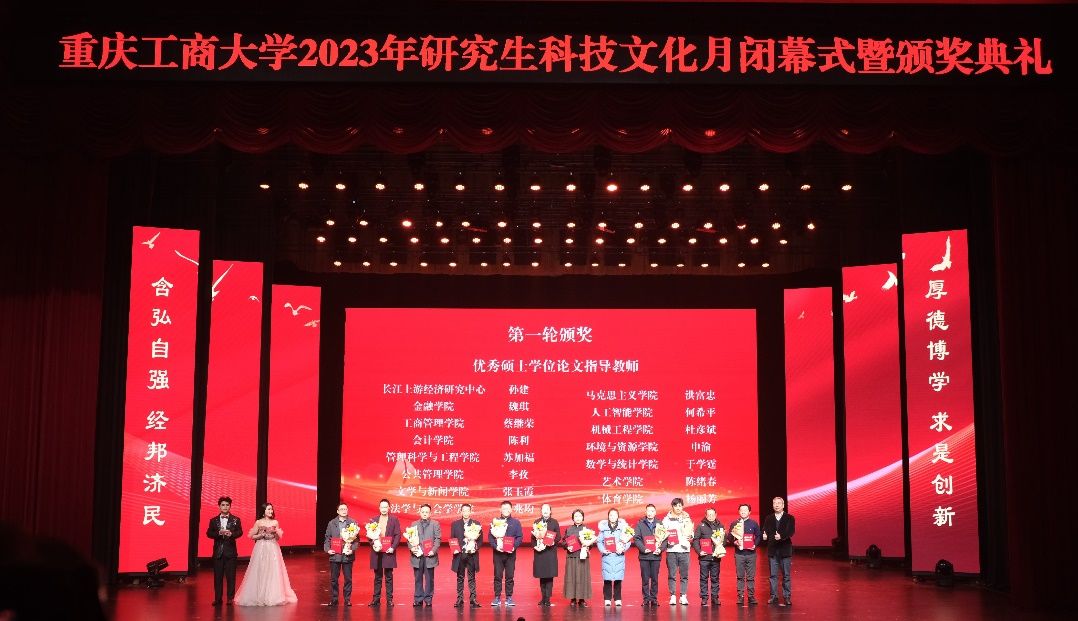2023年12月29日,“活力工商,筑梦研途”研究生科技文化月闭幕式暨颁奖典礼在图书馆剧场举行。学校党委常委、副校长张波和李国军,各职能部门负责人、各研究生培养单位负责人和老师们、各培养单位的研究生和研分会的代表出席了活动。