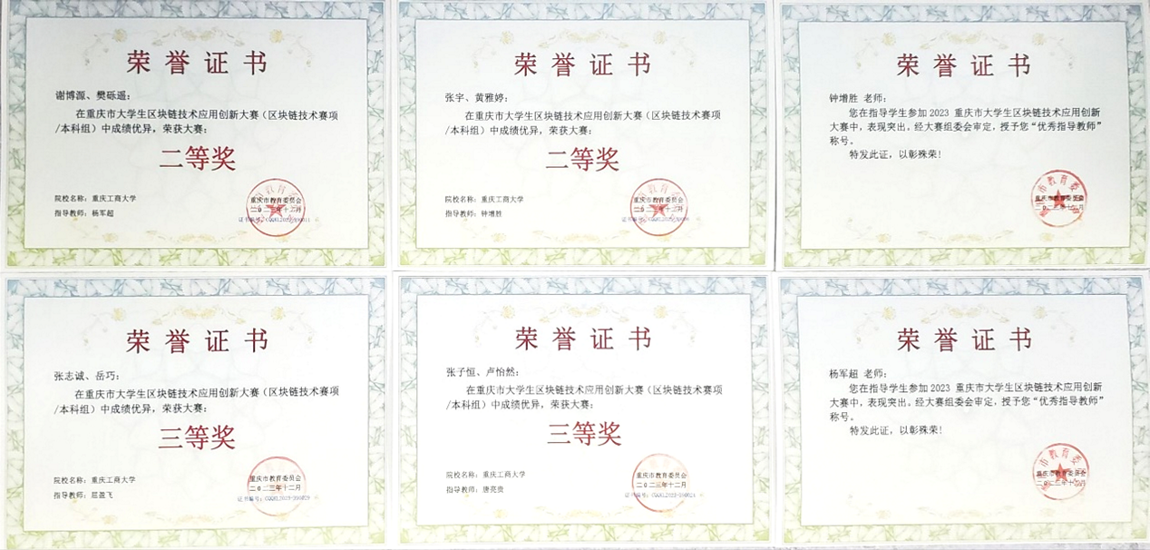 近日,由重庆市教育委员会主办、重庆城市科技学院承办的2023年重庆市大学生区块链技术应用创新大赛圆满落幕。在智能感知与区块链技术重庆市重点实验室的支持下,365官网人工智能学院组织了4支队伍参加重庆市区块链大赛的技术组比拼并获佳绩。