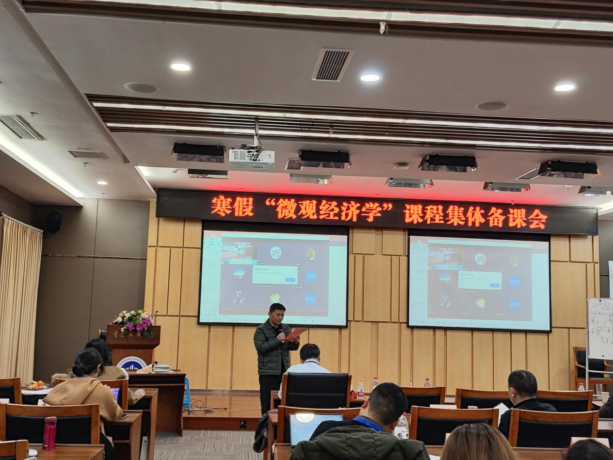 在开班式上,宋瑛院长致欢迎辞。她表示,党的二十大报告指出,要全面提高人才自主培养质量。微观经济学和宏观经济学是经管类专业最重要的学科基础课,是学好其它专业课程的母课程,希望通过此次集体备课会,能够为从事经济学教学的教师们提供一个交流和学习的平台,共同探讨教育教学的新思路和新方法,为提升教学质量和培养优秀人才贡献力量。随后,备课会聚焦于“专家讲+行家说+学者学”,围绕如何上好《微观经济学》这门课程开展深入探讨和交流。其中,中国人民大学刘凤良教授以绕“微观经济学核心内容与若干问题讨论”为题进行了分享,绵阳宜本科技有限公司技术总监汪恒君对数字技术助力教师教学能力提升进行了深入剖析。