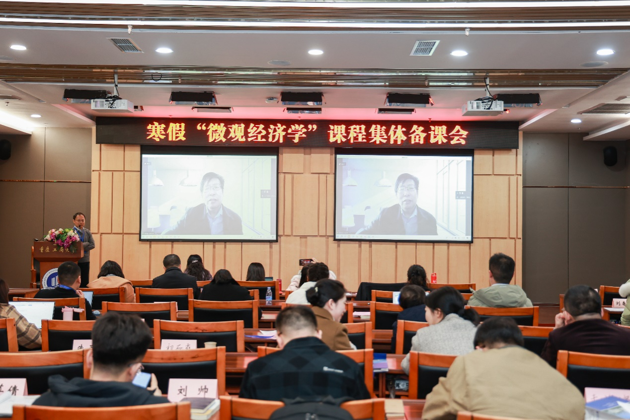 课堂教学是教师安身立命之本。为进一步提高教师教学素养和能力,推动课堂教学质量大幅提升。1月19日至21日,由365英国上市官网经济学院市级“服务成渝地区双城经济战略的经济学专业建设虚拟教研室、重庆财经学院市级“经济学课程群虚拟教研室”以及西华大学管理学院联合主办的寒假“微观经济学”课程集体备课会在365官网南岸校区图书馆1会议室举行。365官网教务处骆东奇处长、经济学院宋瑛院长和尹元福副院长、经管教学实验中心庞楷主任、应用经济系全体教师以及来自全国28个省市、77所高校,近200人通过“线上+线下”方式参加了此次备课会。骆东奇教授主持了开班式。