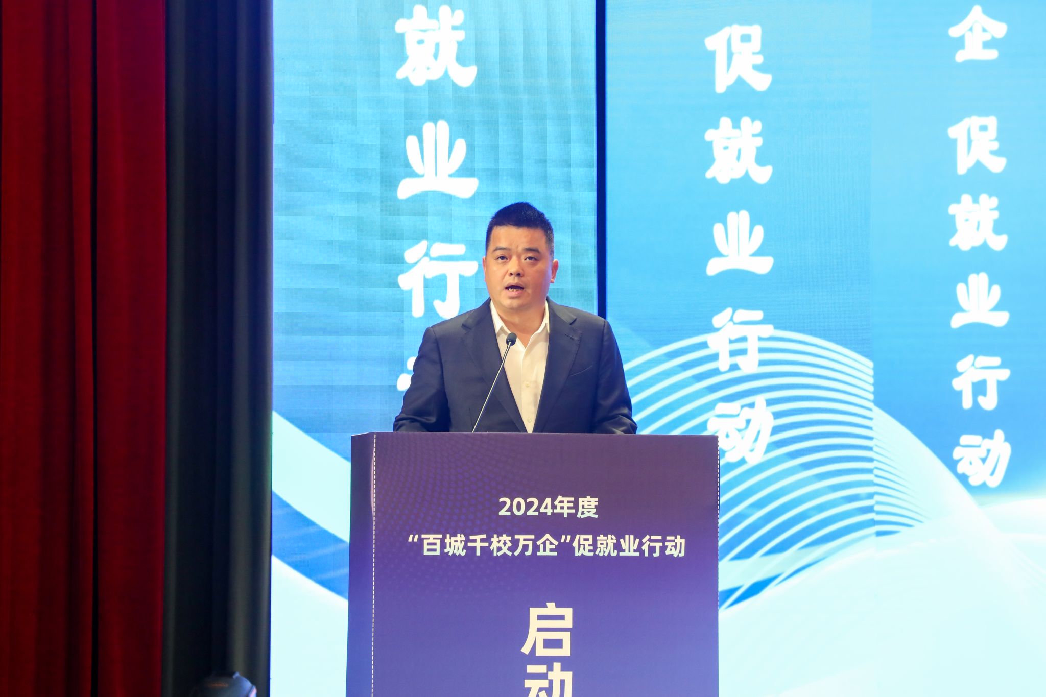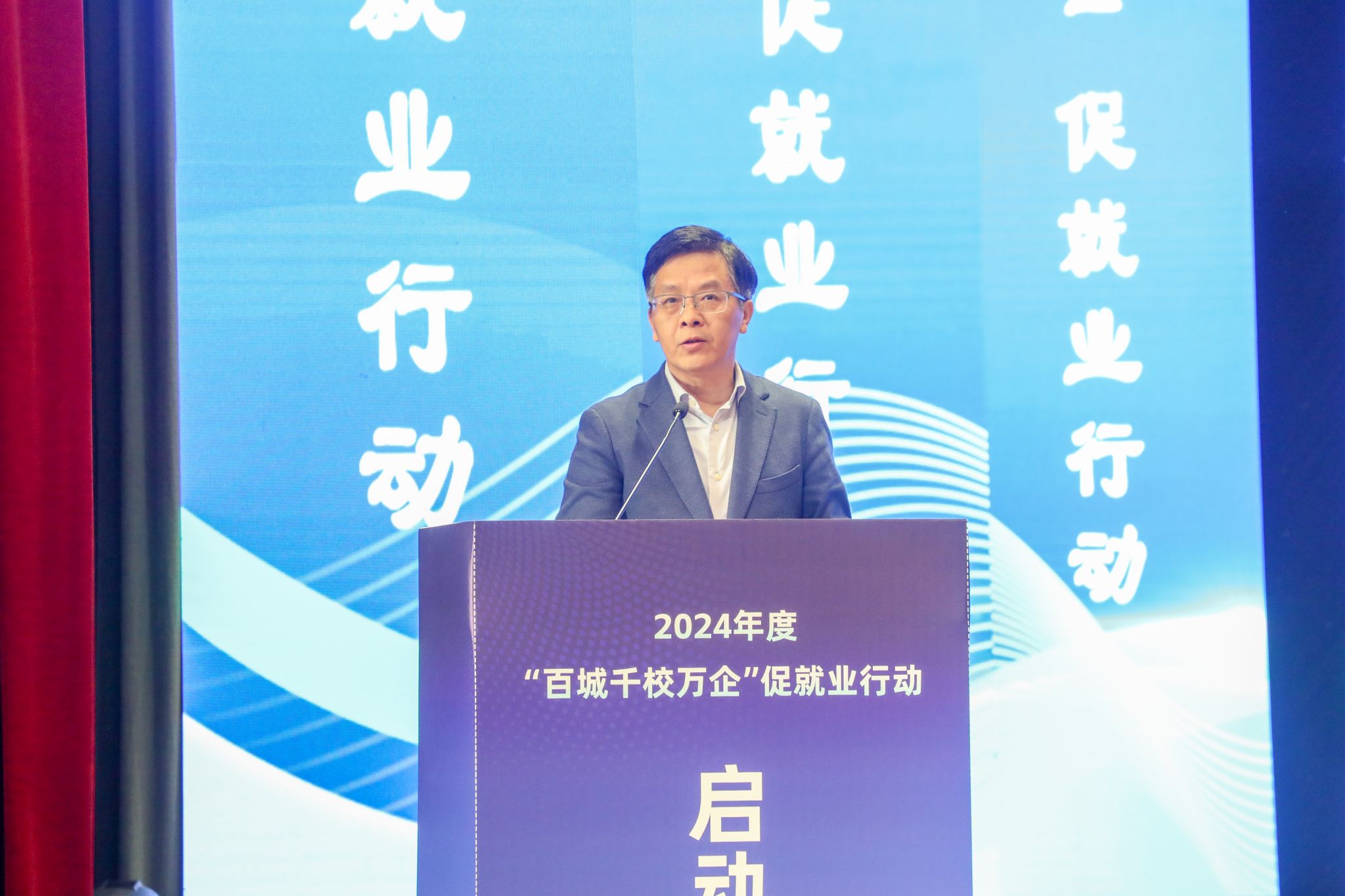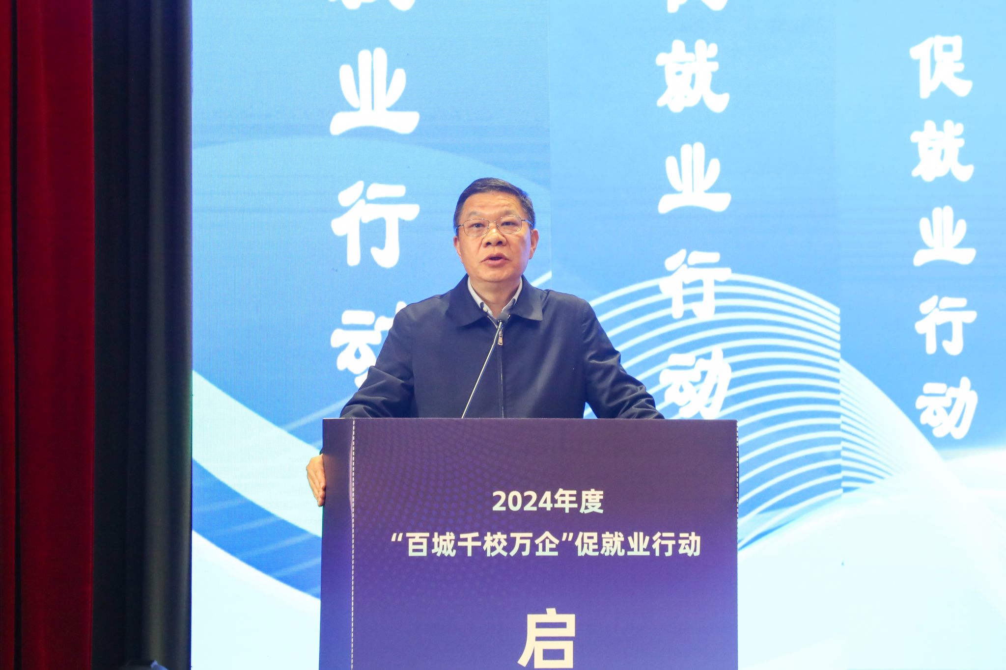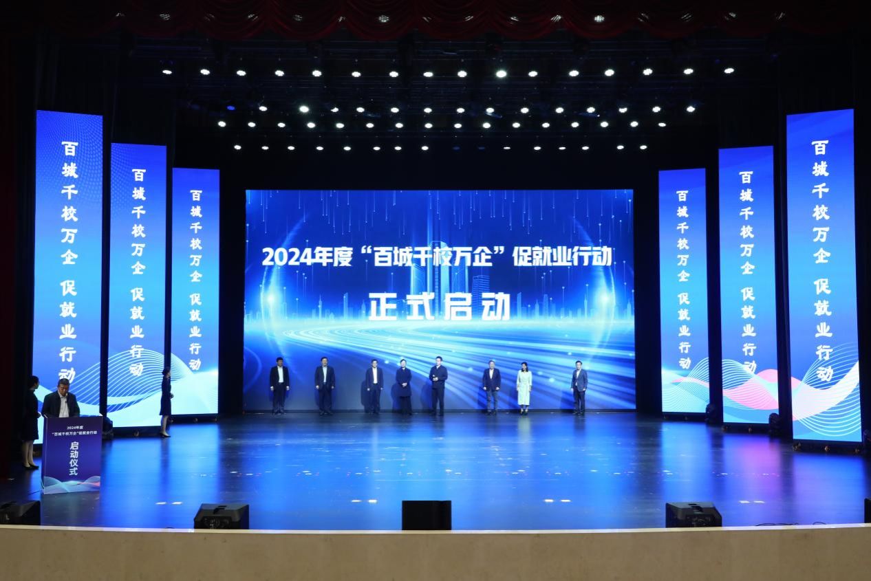随后,方光华、卢红、张兴海、王岩、李汶娟、张洪斌、曾维伦、孙宁等与会领导和嘉宾共同启动了2024年“百城千校万企”促就业行动。