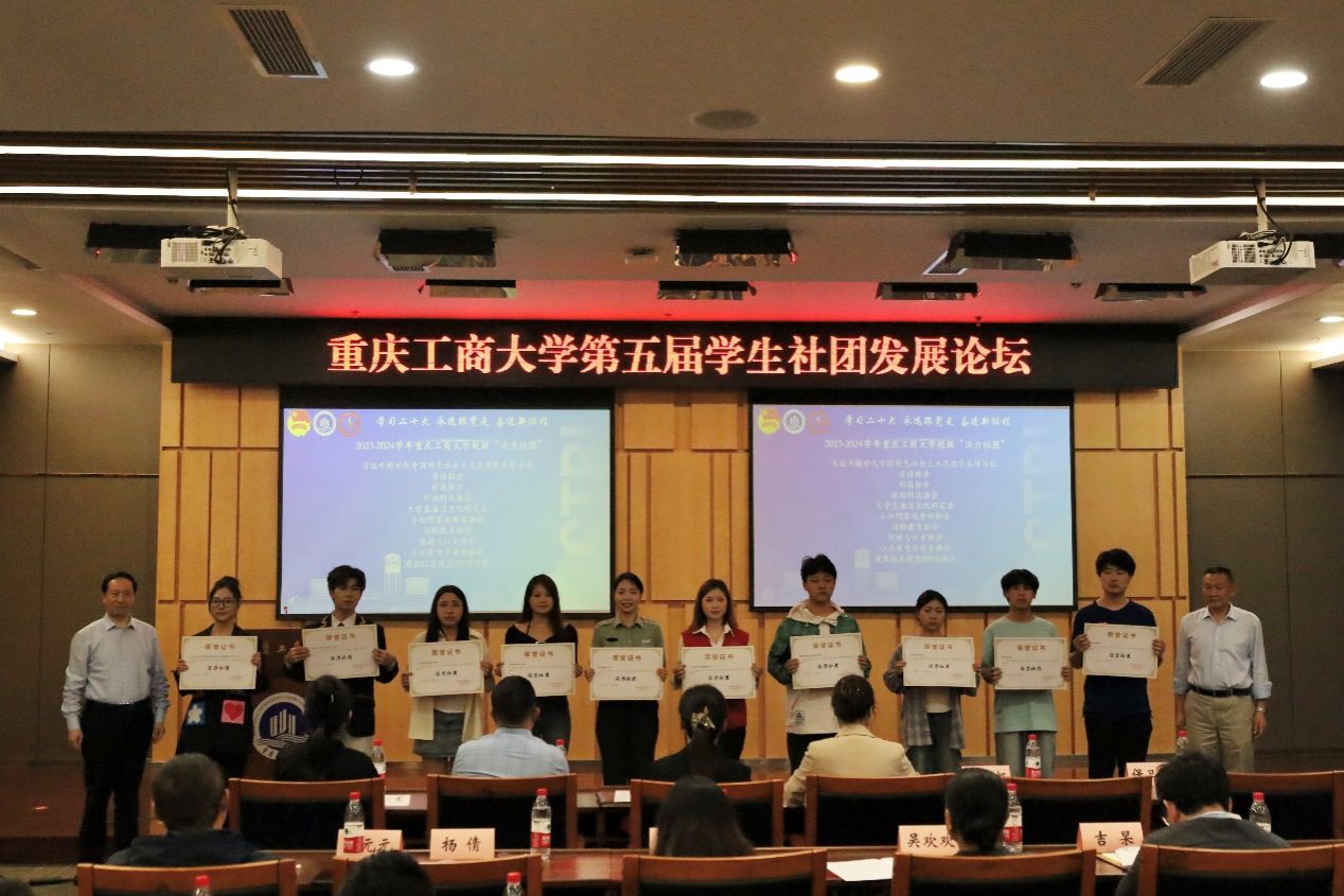 论坛围绕严把学生社团发展方向、把握学生社团育人规律、加强学生社团内部建设,提升社团活动育人成效,为学校学生社团发展提供交流互鉴的平台。社团指导单位代表交流发言环节,工商管理学院党委副书记程亚、艺术学院和现代国际设计艺术学院党委副书记王婷、管理科学与工程学院党委副书记赵钰鑫、文学与新闻学院党委副书记程元元、国际商学院党委副书记杨倩聚焦如何推进社团管理体系,构建长效管理机制,发挥教师能动作用,探索合力育人模式等方面开展经验交流。社团指导教师代表经验分享环节,机械工程学院科技协会指导教师刘静、马克思主义学院习近平新时代中国特色社会主义思想学生研习社指导教师张丽、工商管理学院人力资源春蕾协会指导教师熊雪原、法学与社会学学院大学生廉洁文化研究会指导教师何祖润、环境与资源学院环境科技协会指导教师王南妮从社团组织架构、高效运转、文化传承、活动创新、育人成效等多方面、多角度进行深入分享探讨,传递有亮点、有深度的发展经验及思路。社团会长代表主题分享环节,管理科学与工程学院建筑信息模型(BIM)协会会长刘涛、人工智能学院小红帽家电维修协会会长陈利秋、会计学院财会研究会韩慧怡、党委学工部(党委武装部)国防教育协会会长陈鑫、经济管理实验教学中心大学生创新创业联盟会长张春雪从创新社团管理模式、打造社团品牌项目等方面进行主题分享。会上,与会领导为2022-2023学年学生社团优秀指导教师、2023-2024学年校级“活力社团”颁发荣誉证书。