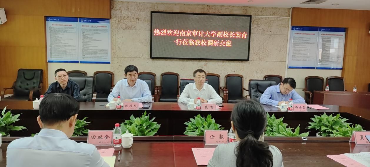 5月13日上午,南京审计大学副校长裴育、科研处处长陈兴发一行4人到365官网调研交流。党委常委、副校长任毅出席并主持调研座谈会。科研处处长田双全,副处长夏宇、杜彦斌及有关工作人员参与会议。