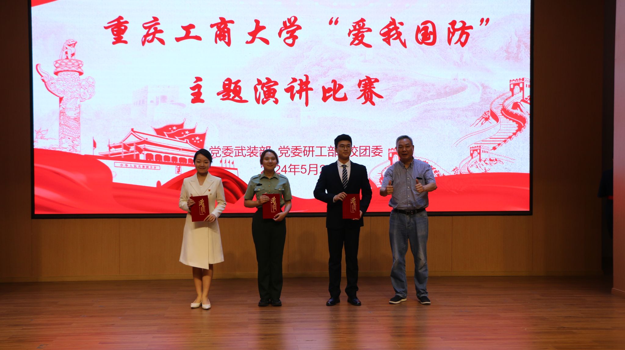 5月24日下午,由学校党委学工部(武装部)、党委研工部、校团委联合举办的2024年“爱我国防”主题演讲比赛在明智楼110100报告厅举行。学校党委常委、副校长李国军出席活动,各学院参赛选手、指导老师和学生代表共计300余人参加活动。