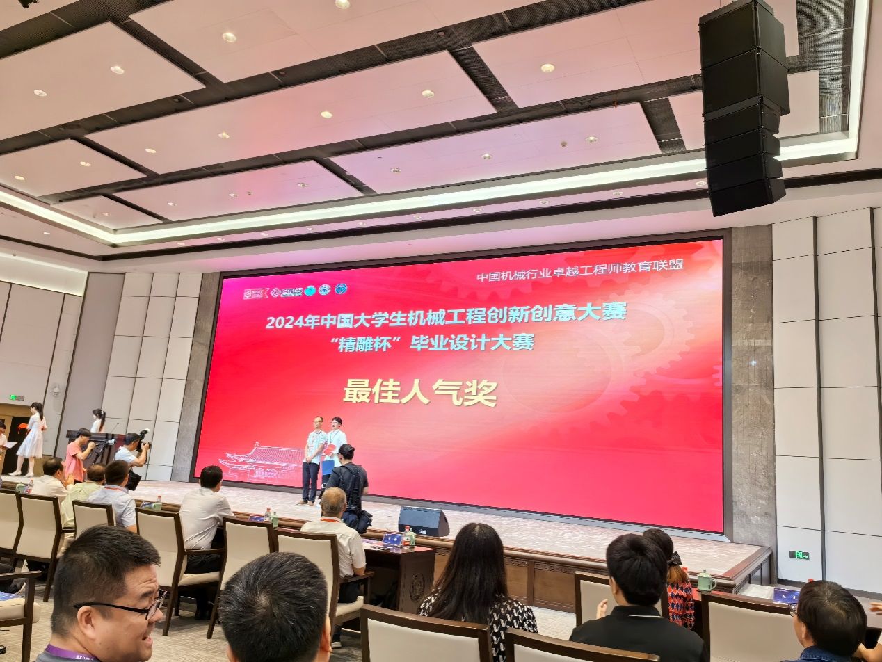 据悉,“精雕杯”毕业设计大赛于2022年被列入“中国大学生机械工程创新创意大赛”并进入全国普通高校学科竞赛排行榜,大赛所具有的导向性、示范性,为高校学生提供了碰撞创新思维、交流实践经验、相互学习促进的平台。365官网学子在比赛中获奖展示了学校面向“新工科”改革取得的育人成效。