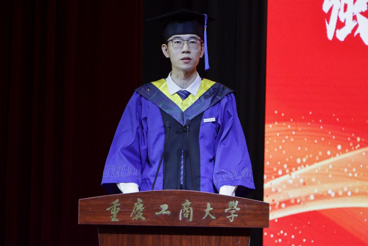 毕业生代表、2024届机械电子工程专业研究生黄凌波分享了在学校的成长与收获,向辛勤培养他的母校、领导和老师致以最衷心的感谢和最崇高的敬意。他代表全体毕业生表态,在未来的日子里,将传承和弘扬“含弘自强、经邦济民”的重工商大精神,展现重工商大青年顽强拼搏、刚健有为的精神面貌,以毕业为新的起点,积极投身强国建设、民族复兴的伟大事业,让青春在党和人民最需要的地方绽放绚丽之花。