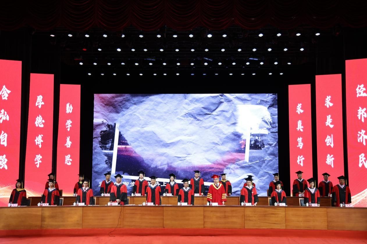 骊歌悠扬,逐梦启航。6月20日上午,学校举行2024届学生毕业典礼暨学位授予仪式,庆祝8000余名本硕博毕业生圆满完成在学校的求学生涯,开启人生崭新篇章。学校领导、学校学位评定委员会委员代表、专家教授代表,教师代表、校友代表、家长代表、毕业生代表齐聚一堂,共同见证这一美好时刻。校长温涛以“追寻有生命力的人生”为题为毕业生们上在重工商大的“最后一课”。授位仪式由党委常委、副校长李国军主持。