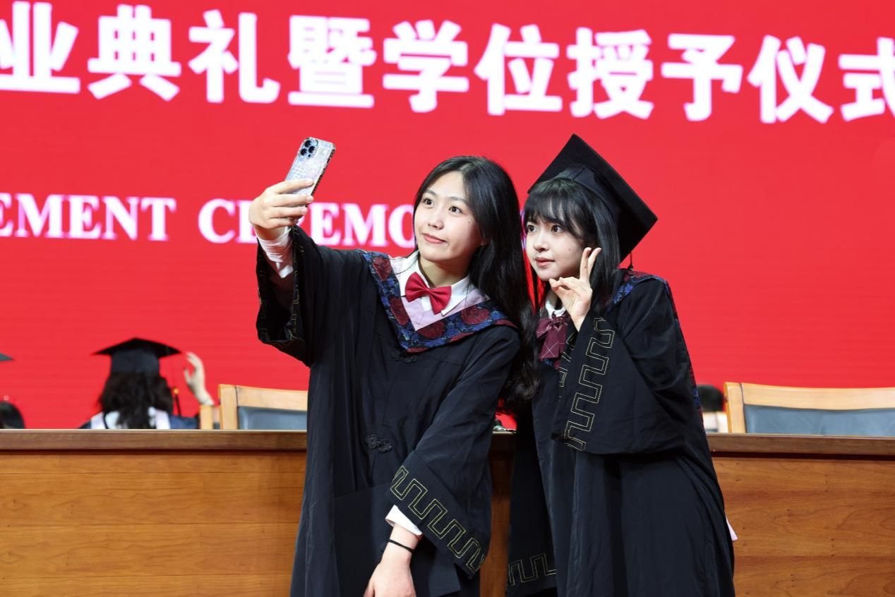 典礼开始前,毕业生代表倾情演唱《后会无期》《向光而行》《最佳损友》《那些你很冒险的梦》《一路生花》。歌声响起,熟悉的旋律萦绕会场,感染着每一位毕业生。