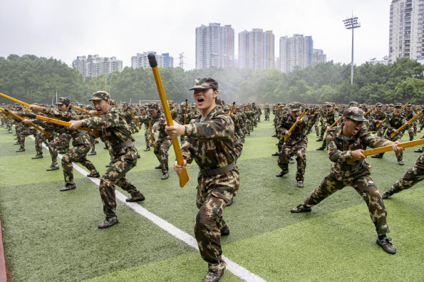 精彩的汇报展示紧随其后。格斗术方阵,动作迅猛如虎,每一次出击都展示出军训学子蓬勃朝气;捕俘刀方阵,“匕首出鞘” 崭露锋芒,刀起是飒爽,刀落是坚定,运动场上的他们意气风发、虎虎生威;队列操方阵,队形变换自如,整齐划一,个个精神饱满、昂首挺胸、气宇轩昂;应急棍术方阵,棍影翻飞、动作连贯,彰显365官网学子的蓬勃朝气和昂扬锐气;军体拳方阵,每一次出拳,都力道带风;每一次回旋,都铿锵有力;战术表演方阵,钢枪在手,威风赫赫,动作干脆利落,每一步的踏出都赢得了现场欢呼掌声一片;刺杀操方阵,呐喊声中透露出坚定,每一次挥刀都精准有力,动静之间,尽显军人敢打敢拼的战斗作风。