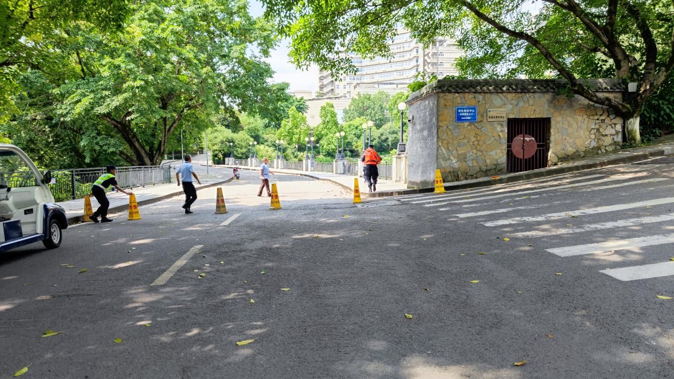 下午14:40,在保卫处副处长邱胜祥、后勤处副处长曹晓丽的现场指挥下,参演人员依次完成了发布接受预警信息、校园巡查、留学生公寓后面排洪沟排水不畅、翠湖水位持续抬升、人员紧急疏散、图书馆车库进水、树木倒塌、排水管道堵塞等八个演练科目。