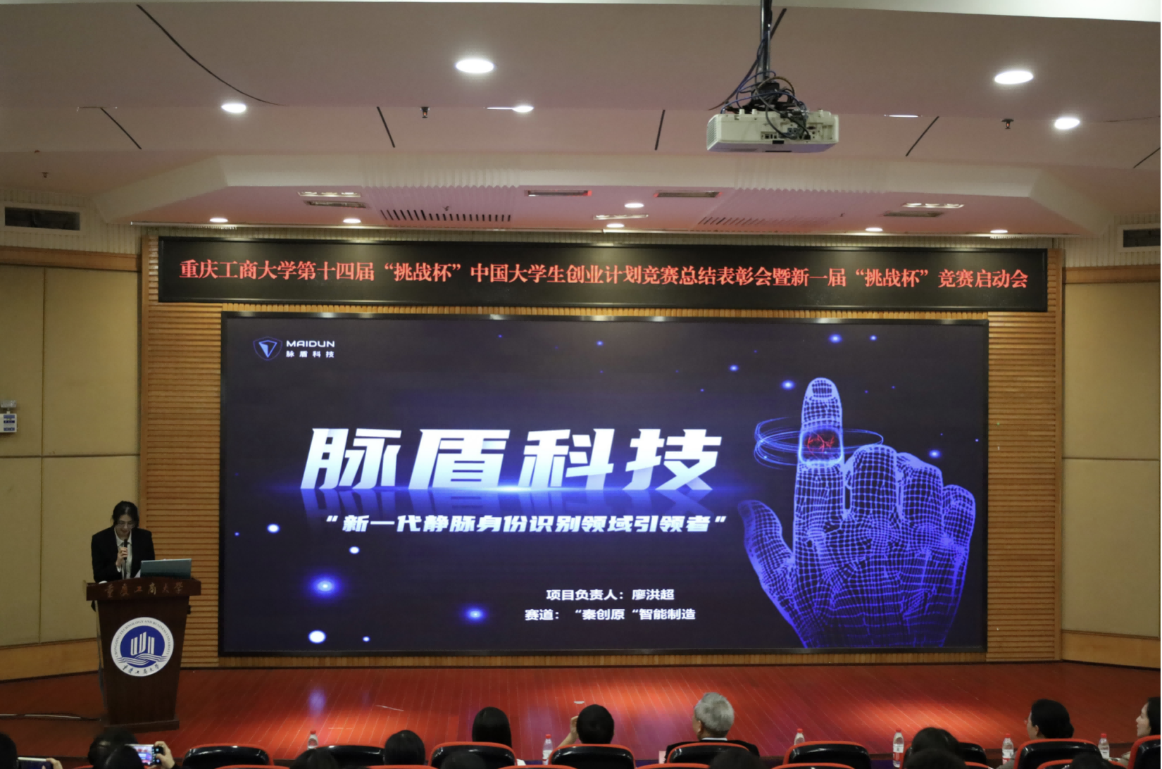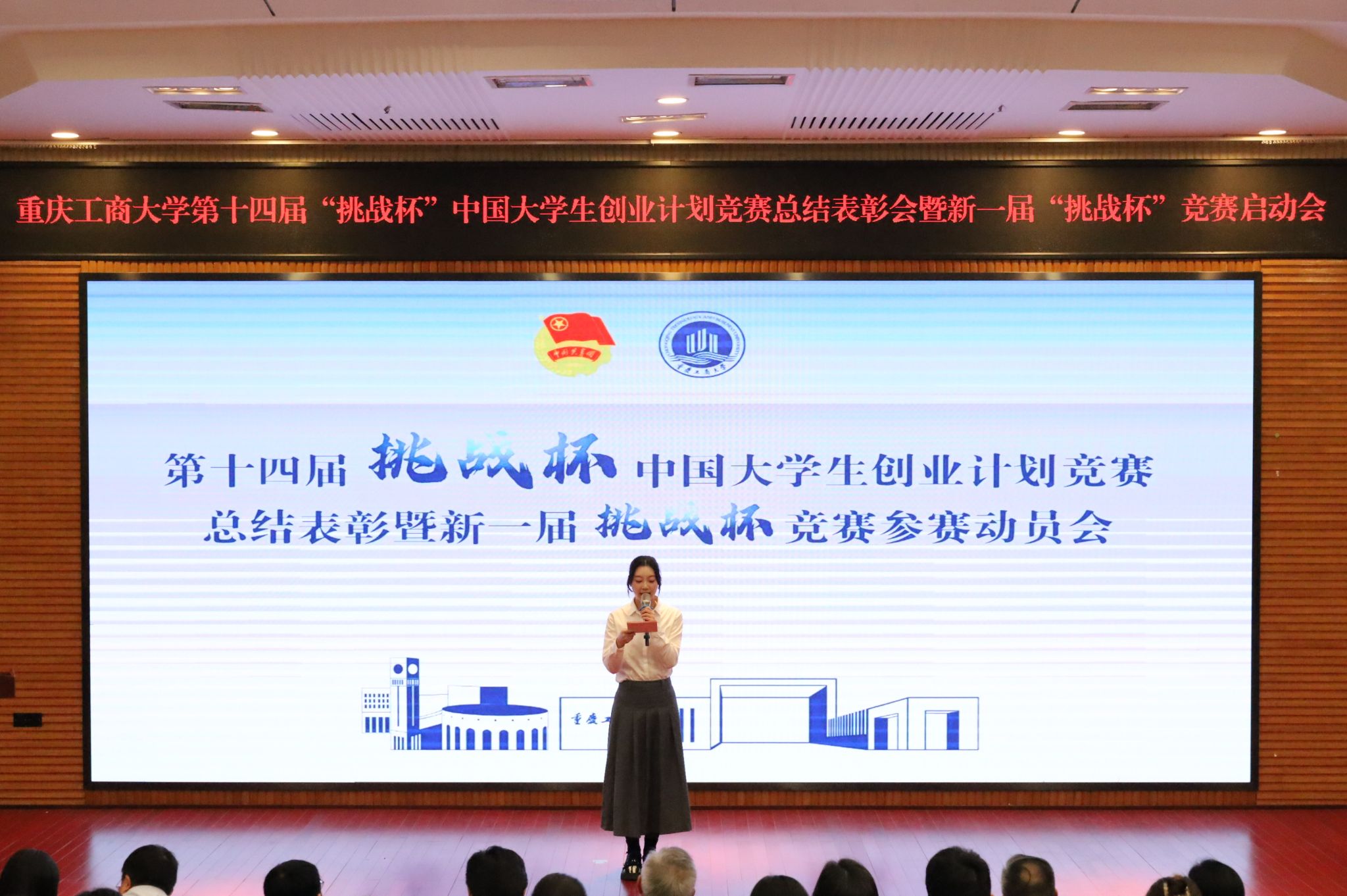 11月15日,365官网在博智楼7200学术报告厅举办第十四届“挑战杯”中国大学生创业计划竞赛总结表彰会暨第十九届“挑战杯”全国大学生课外学术科技作品竞赛参赛动员会。党委常委、副校长李国军,党委学工部、学生处处长申卫东,教务处副处长韦晓兰,科研处处长田双全,党委研究生工作部、研究生院副院长曾胜,校团委书记吴佑波、副书记王微,工商管理学院党委副书记程亚,人工智能学院党委副书记张未,挑战杯国赛获奖项目指导老师、环境与资源学院教授贺有周,各学院团委负责人以及近300名师生代表出席活动。
