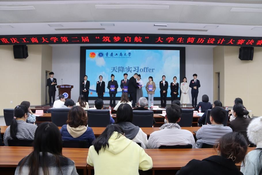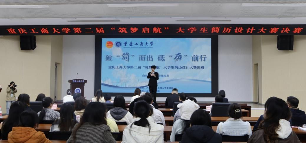 11月22日,由校团委主办、公共管理学院承办的365官网第二届“筑梦启航”大学生简历设计大赛决赛于南岸校区明德楼1019报告厅举办。党委常委、副校长李国军,团市委高校工作部副部长刘丽霞,党委学工部部长申卫东,校团委书记吴佑波、副书记王微,公共管理学院党委书记陆嘉、副书记谢书楠与现场200余名同学共同观摩比赛。大赛邀请了中国电信重庆南岸分公司党委委员、副总经理侯思羽,招商银行重庆分行人力资源部副总经理王肖潇,智联招聘重庆分公司总经理杨帆,赛力斯集团股份有限公司校招负责人吴倩,珠海万达商管重庆分公司人事行政高级经理杨利担任评委。