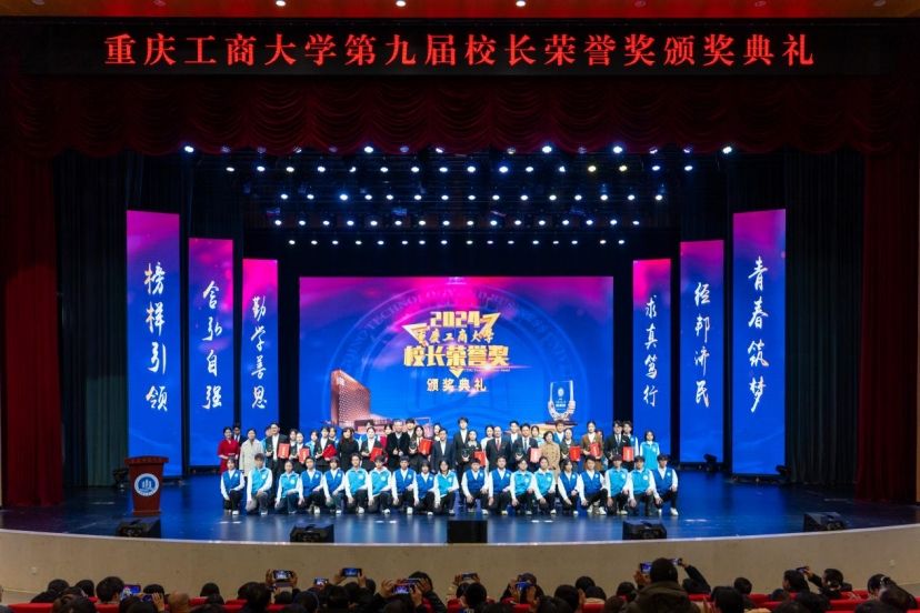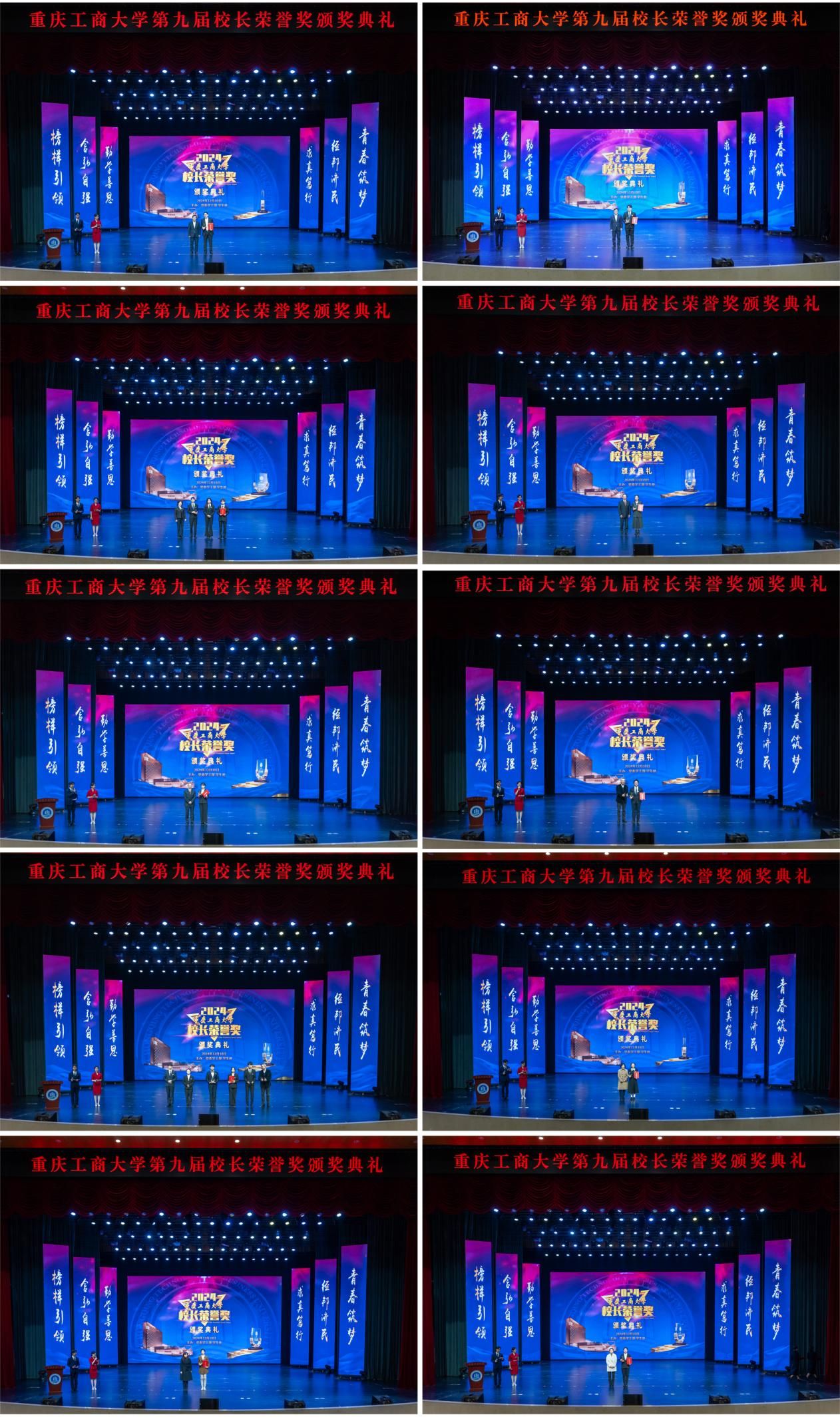 典礼以视频的形式介绍了校长荣誉奖的设立目的及其评选情况。此次“校长荣誉奖”评选经个人自荐与学院推荐相结合,学生处与研究生院复核,评审工作组初评,全面考察和复审答辩等环节,最终评选出了8位学生个人和2个团队。国际商学院2021级金融学专业陈彦甫,机械工程学院汽车人协会,人工智能学院2022级软件工程专业硕士研究生章勤,工商管理学院2021级工商管理专业周安宁,会计学院2021级智能会计班张婧,现代国际设计艺术学院2021级服装与服饰设计专业陈韵至,法学与社会学学院2021级法学专业张炜嘉,管理科学与工程学院BIM 协会,外国语学院2021级法语专业祖诗淇,成渝地区双城经济圈建设研究院2022级产业经济学专业博士研究生宋泓锑等脱颖而出,接过由校领导亲自颁发的、代表365官网学子校内最高荣誉的奖项。