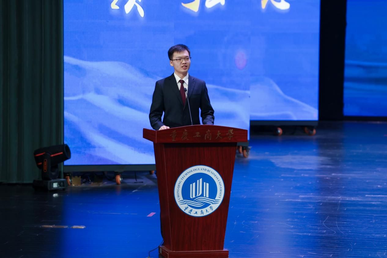 往届校长荣誉奖获得者代表、金融学院2014级税收学专业毕业生、现就职于国家税务总局刘润哲代表历届获奖者向母校及各位老师致以诚挚的感谢,同时也对此次获奖的团队和个人表示衷心的祝贺。他谈到,“校长荣誉奖”这份荣誉一直是他昂首挺胸、阔步前行的底气,让他从容地面对工作和生活中的各类挑战。他与学弟学妹们分享交流自身的感想和体会:一是要有坦荡通达的正气,立德修身,厚德载物。二是要有一专多能的才气,练就本领,博学笃行。三是要有勇攀高峰的志气,脚踏实地,求是求实。四是要有所向披靡的朝气,敢想敢干,守正创新。他希望大家以此次获奖的团队和个人为榜样,立报国强国大志向,做挺膺担当奋斗者,成为德智体美劳全面发展的社会主义建设者和接班人。