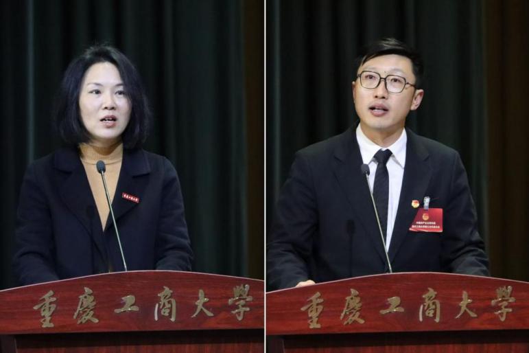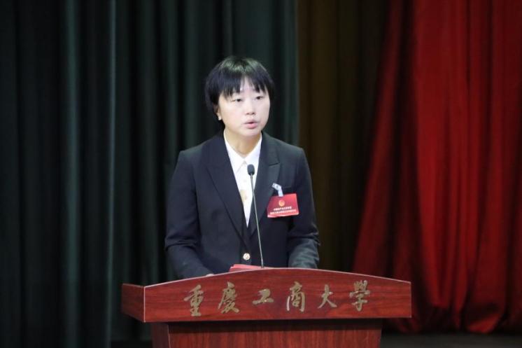 杨春渝向大会胜利召开表示热烈祝贺并讲话。她肯定近年来重工商大共青团取得的成绩。在学校党政的正确领导和亲切关怀下,学校共青团紧扣思想政治引领,持续深化青年马克思主义者培养工程,通过构建“红岩铸魂·筑梦启航”思政育人体系,不断提升共青团思想政治引领实效。紧盯青年学生全面发展,打造“筑梦启航”团学工作总品牌,深入开展“科技、志愿、艺术、社团、体育‘五大文化节’”“感动校园人物”等品牌活动,积极服务学生德智体美劳全面发展。紧抓组织改革建设,对标从严治党全面从严管团治团,完善基层团组织激励考核举措,推行班团一体化改革,开展“青春倡廉”行动,不断加强团组织、团干部、团员先进性建设。紧推数字赋能增效,依托“青春重庆”应用为学校共青团工作注入数“智”化活力,先后荣获“挑战杯”全国一等奖、“三下乡”社会实践全国优秀单位、中国青年志愿者优秀组织奖等多个全国标志性成果。她讲到,重工商大团员青年要深学笃行习近平总书记关于青年工作的重要思想,在新重庆建设中贡献青春力量。并对365官网共青团提出了四点希望,一是切实加强对青年师生政治引领。二是广泛动员青年师生建功新重庆。三是更好联系服务青年师生。四是对标全面从严治党推进全面从严治团。