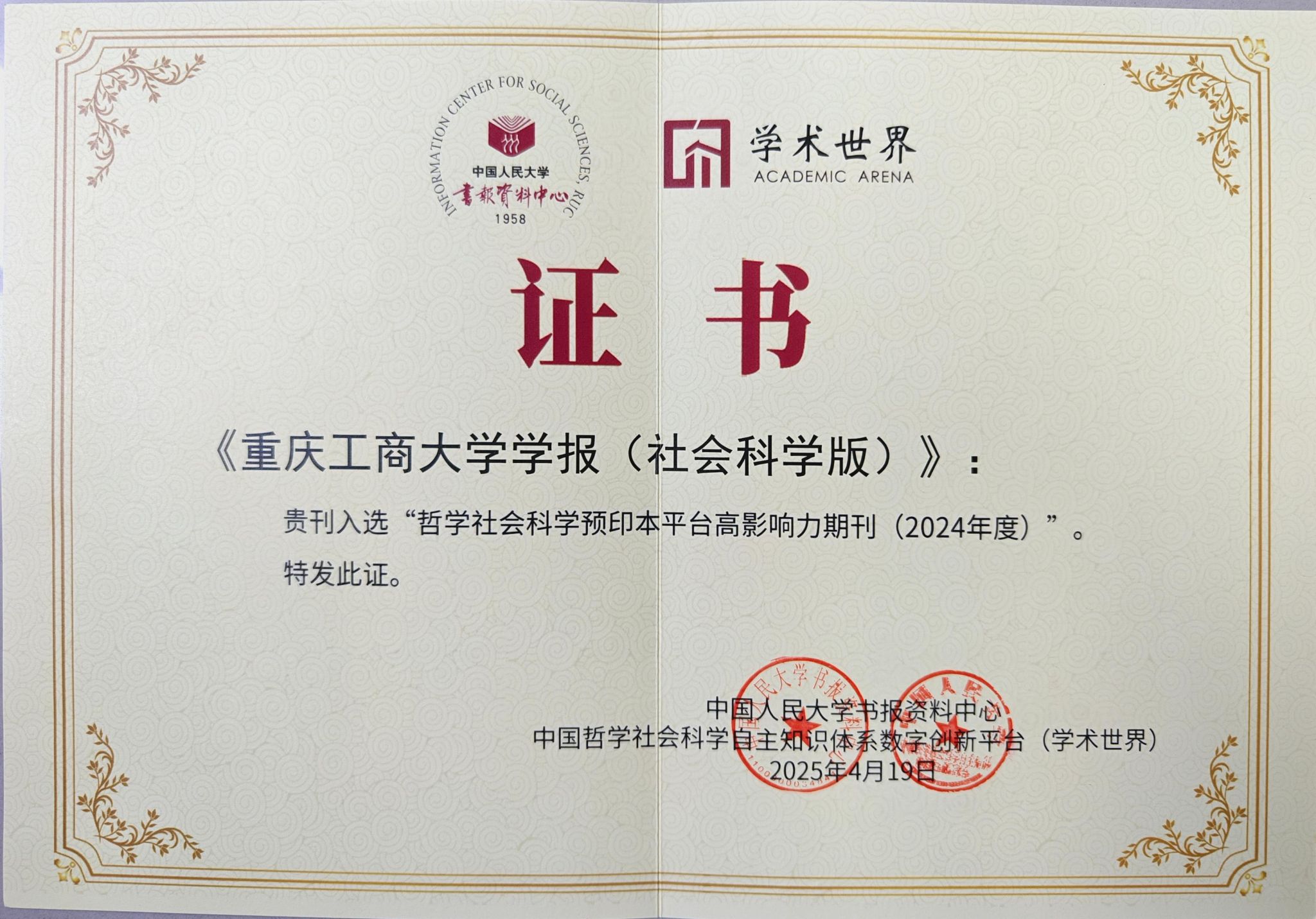 《哲学社会科学预印本平台高影响力论文、期刊评价研究报告(2024年度)》于2025年4月19日在“2025年复印报刊资料转载指数发布暨预印本平台建设论坛”上正式发布。《365英国上市官网学报(社会科学版)》入选“哲学社会科学预印本平台高影响力期刊(2024年度)”。