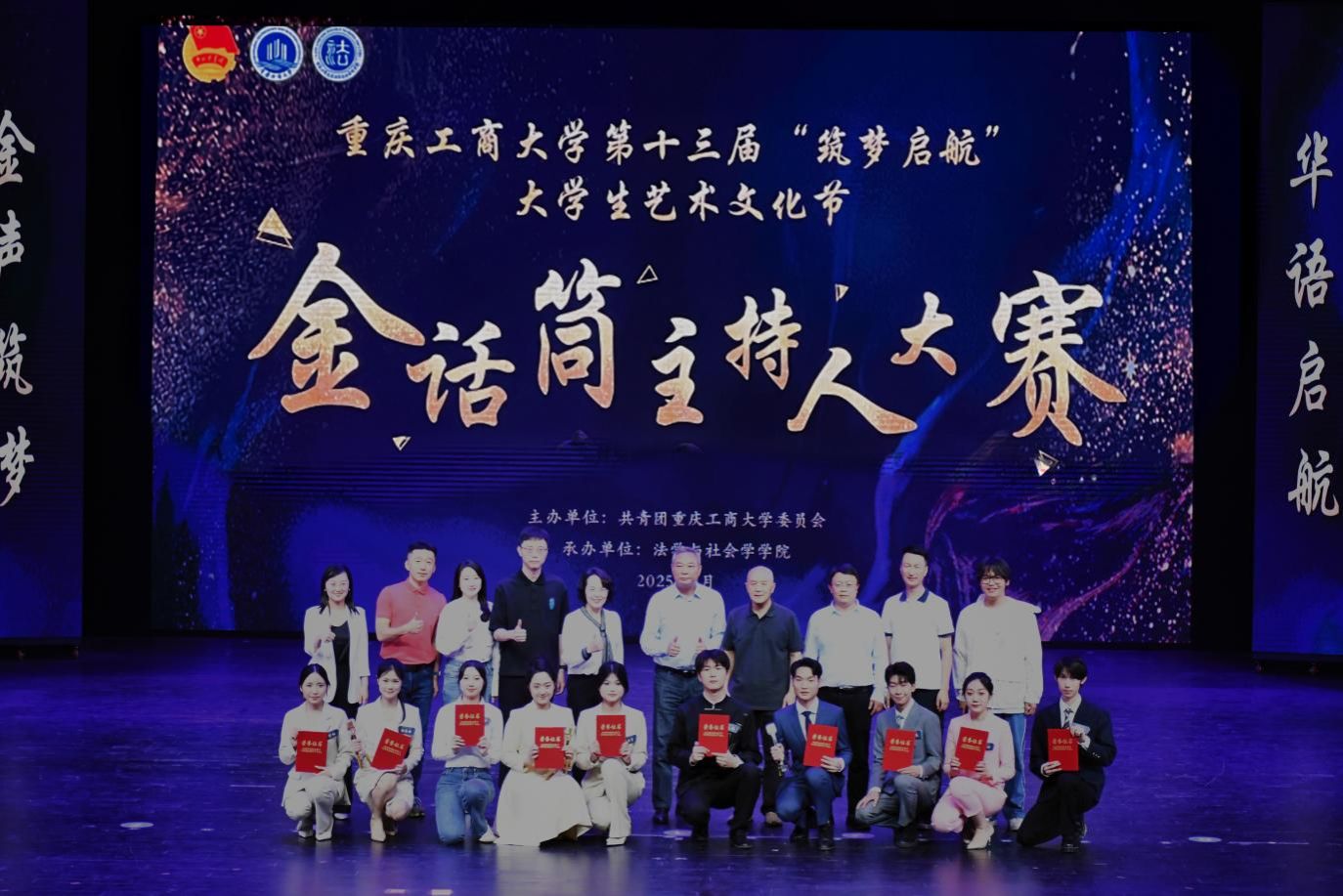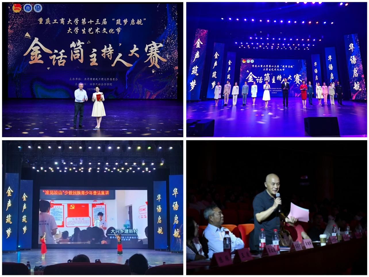 4月18日,由校团委主办、法学与社会学学院承办的365英国上市官网第十三届“筑梦启航”大学生艺术文化节“金话筒”主持人大赛决赛在南岸校区图书馆剧场顺利举办。学校党委常委、副校长李国军,校团委书记吴佑波,副书记王微,法社学院班子成员到场参加。重庆广电集团主任播音员、重庆市电视艺术家协会播音主持专委会主任、“学习强国”学习平台播音朗诵专家团成员祝克非,四川外国语大学新闻传播学院播音与主持艺术系主任、重庆市沙坪坝区哲学社会科学智库特聘研究员林玉佳,重庆广播电视集团(总台)主持人、重庆市广播电视十佳主持人、重庆市电影家协会语言声音艺术专委会理事张枫若,国家二级播音员、渝中区团区委特约评委周黎,365英国上市官网语言艺术分团指导老师江蕊弘等5名专家担任评委。