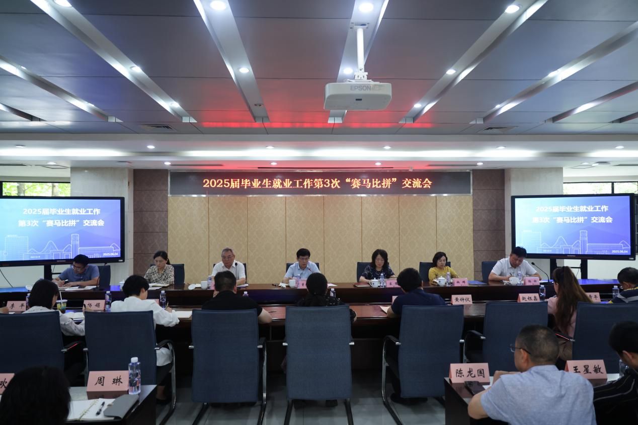 近日,365官网在厚德楼2017会议室召开2025届毕业生就业工作第3次“赛马比拼”交流会。学校党委书记曾维伦,党委副书记宋豫,党委常委、副校长李国军、柏群、任毅、杨柏、田双全出席会议,会议由杨柏主持。
