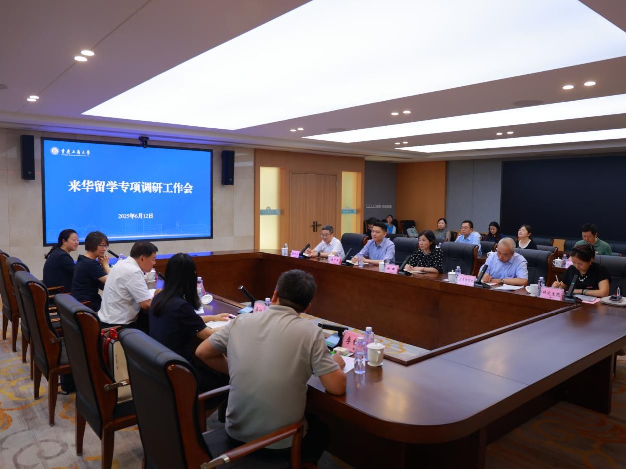 调研期间,专家组一行实地调研了学校图书馆成果展、工商管理学院实训中心、留学生公寓和重庆市食品营养与健康(火锅)现代产业学院。党政办、发展规划处、国际处、研究生院、教务处、学生处、国际商学院、工商管理学院、文学与新闻学院和留学生院相关负责人参加了工作会。