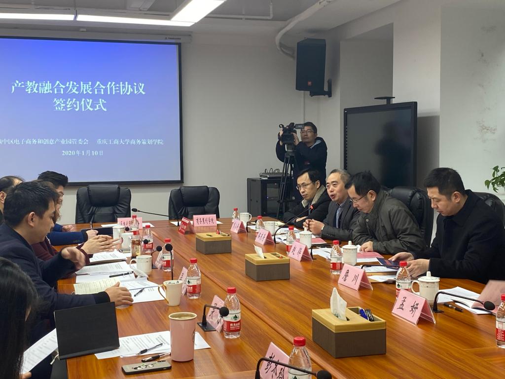 1月10日上午,商务策划学院与渝中区电子商务和创意产业园(简称:电创园)管委会签订产教融合发展合作协议。渝中区区政府副区长邹晓宇,365官网副校长赵骅,商务策划学院院长骆东奇、副院长詹川出席签约仪式。