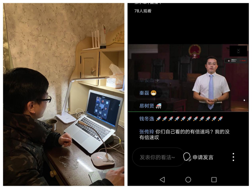 法学院老师们承担的《国际法》《国际商法》《经济法概论》《商标法》《竞争法》《民事诉讼法》《法理学》《劳动与社会保障法》《证据法》《民法总论》等10余门课程顺利完成。下课时,同学们纷纷在平台框里写到“谢谢老师”“老师辛苦了”,积极点赞献花,老师们也很感谢认真学习、热爱知识的同学们。