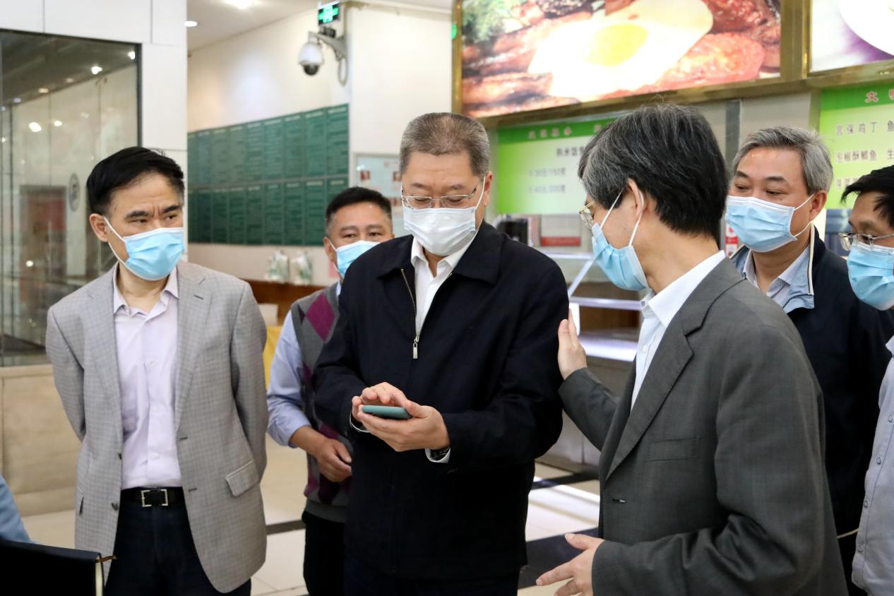 4月29日,市委教育工委书记、市教委主任黄政一行来到365英国上市官网检查疫情防控及开学前准备工作,黄政走进学校食堂,了解食堂取餐用餐、错峰就餐等情况,检查饭菜质量及食品卫生;检查学校开学前防控物资储备和设置隔离点情况,在学校健康观察点向医务人员表示感谢。黄政要求,一定要把疫情防控工作作为当前重中之重的任务,切实保障师生员工的身体健康和生命安全,从严从实从细从快落实好各项防控措施,坚决打赢高校开学复课这场疫情防控阻击战。