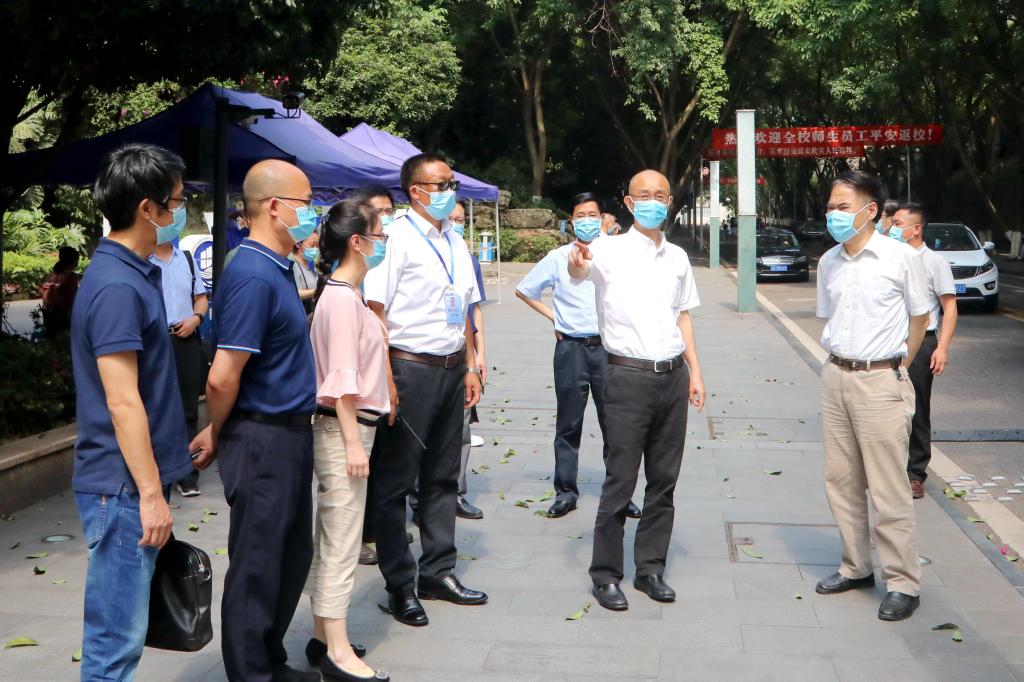 5月19日下午,南岸区人大常委会主任朱维率区教委、区卫健委、区公安分局、区疾控中心、海棠溪街道等有关部门负责人一行调研365官网开学复课工作。校党委书记李志雄,副校长陈兴述、李国军,有关职能部门负责人参加。