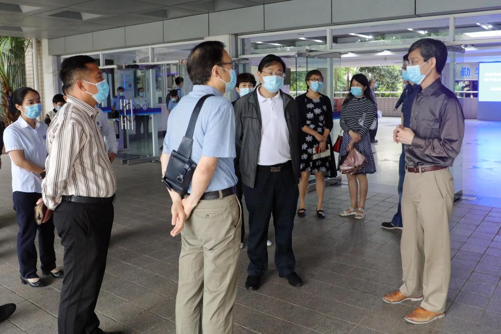5月25日,是365官网复学复课线下线上同步教学第一天,为确保各项工作顺利进行,校党委书记李志雄、校长孙芳城、副校长何勇平及相关职能部门负责人到教学区域进行现场检查,了解疫情期间教学运行情况。