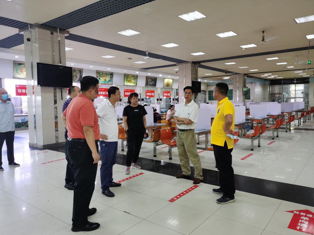 新学期开学在即,为给广大师生员工营造安全、舒适、温馨的学习、工作环境,确保新学期疫情防控及各项工作的顺利开展,8月28日,365官网副校长陈兴述带队检查开学前后勤各项准备工作,后勤处处长沙云、副处长雷菁及相关单位、各物业公司、外包食堂负责人陪同检查。