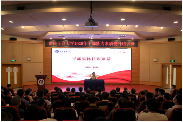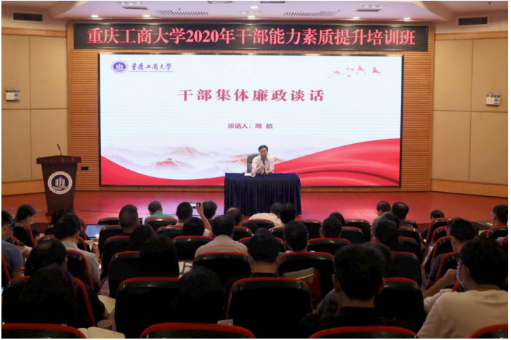 8月31日上午,学校在博智楼7200学术报告厅继续举行干部能力素质提升培训。校党委常委、纪委书记、市监委驻365英国上市官网监察专员周航作了干部集体廉政谈话。校党委书记李志雄作了干部集体任职谈话。培训班全体成员参加了谈话。会议由校党委副书记宋豫主持。