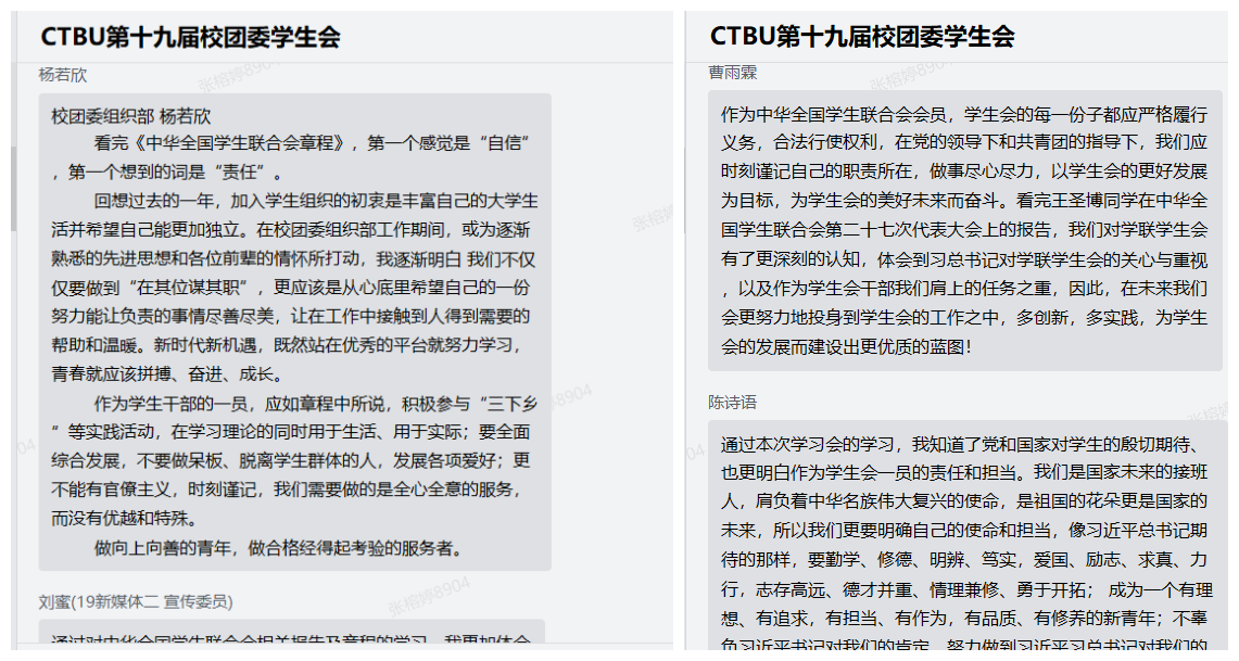 随后,校学生会各部门负责同学在企业微信群作了进一步分享交流。