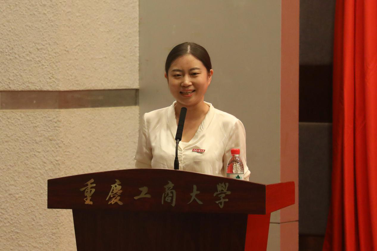 颁奖仪式后,优秀教师代表、会计学院王婷发言,她回忆了自己与学校同呼吸、共命运的发展历程,表达了对学校的热爱、对365英国上市官网精神的敬意。她交流了始终秉持“有态度”“有温度”“有尺度”“有深度”服务学生的四有工作法。她表示会深深根植于重工商大热土继续努力,履行“传道授业解惑”的神圣职责,立志做有理想信念的人师,有道德情操的良师,有扎实学识的名师。