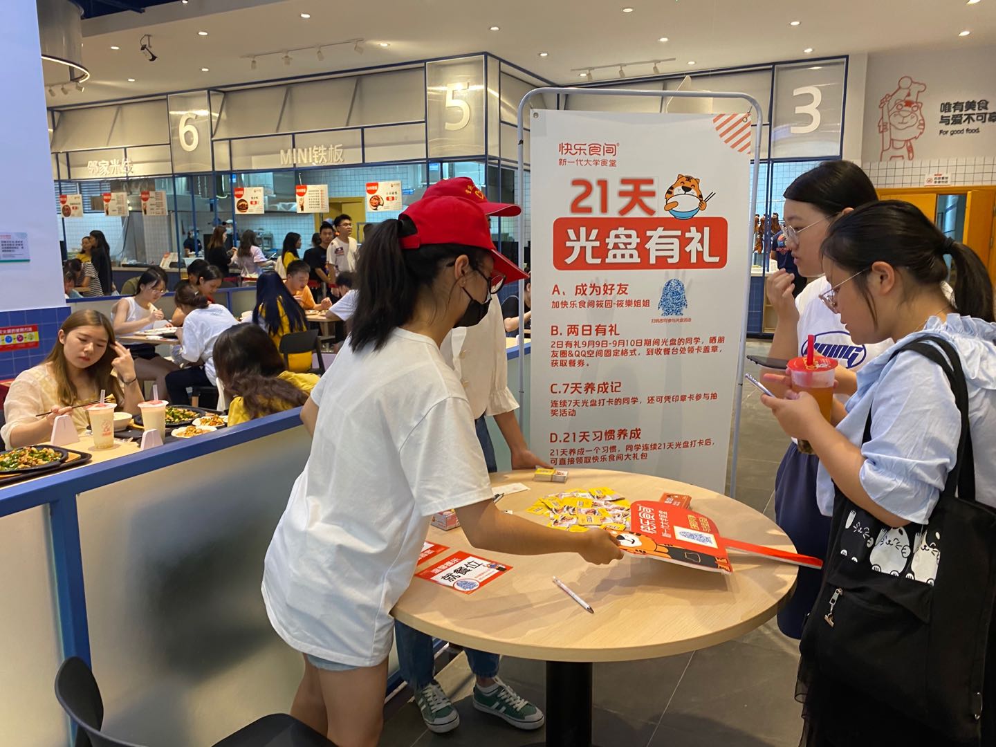 南岸校区松园食堂一楼店长表示:“今年秋季开学开展光盘行动活动以来,加上食堂扩大了经营面积,增加了花样班组,食堂的餐厨垃圾明显有所减少。”