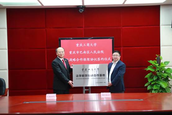 随后,宋豫与蒋友波代表双方签署了战略合作框架协议,黄文为巴南区人民法院法学教学科研合作基地授牌。