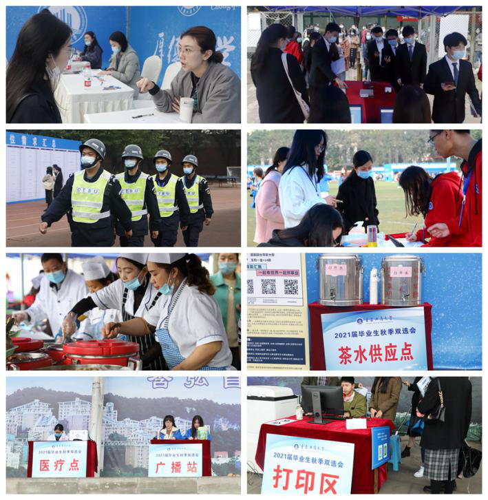 由于疫情防控工作要求,本次双选会主要针对本校学生开放,学生通过“365英国上市官网就业指导中心”公众号预约入场,活动吸引了共计近4000名学生参加。双选会是学校搭建的毕业生与用人单位之间的重要桥梁,为了进一步加强对毕业生的就业指导,现场设立了“就业指导服务”“简历门诊”等服务专区分布在会场的七个角落。来自就业指导中心、工商管理学院与管理工程学院近150名志愿者在会场各地点为用人单位和毕业生提供热情周到的服务。从上午八点半持续到下午三点的双选会全程秩序井然,随处可见志愿者们的身影,他们待人接物大方礼貌,工作过程中彼此交接配合默契有序,在维护现场秩序的同时积极提供服务,协助单位做好招聘工作,帮助同学寻找展台位置,答疑解惑。为了确保本次双选会安全、有序、高效举行,招生就业处多次会同学校党委宣传部、保卫处、后勤处、信息办、体育学院、物业公司等相关部门统筹协调,现场办公,实地核查。各部门通力合作,确保本次双选会顺利举行。