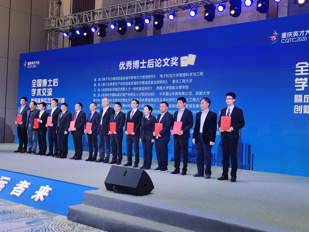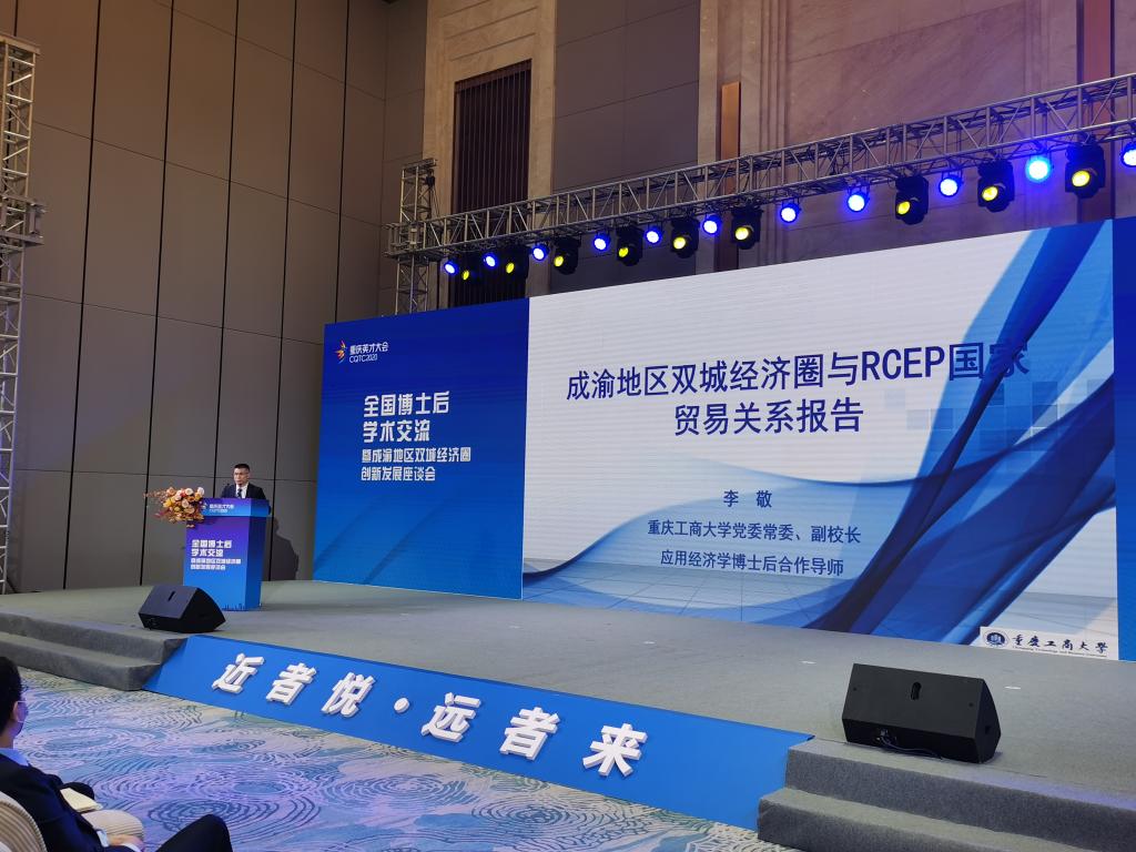 在主题演讲和学术交流环节,国家发改委国土开发与地区经济研究所所长高国力研究员通过视频的方式分享了题为“全面提升成渝地区双城经济圈的战略位势”的大会报告。获奖博士后电子科技大学蒲波和365英国上市官网赖辉应邀作了主题发言。李敬现场作了《成渝地区双城经济圈与RCEP贸易关系数据发布报告》,获得全场好评。