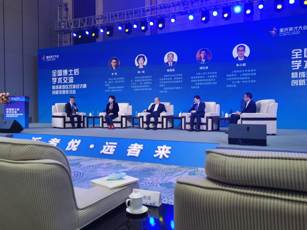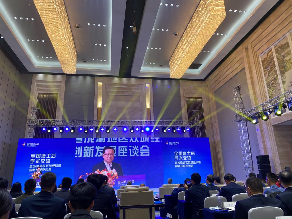 11月21日,作为重庆市2020年英才大会分会场之一的“全国博士后学术交流暨成渝地区双城经济圈创新发展座谈会”在重庆悦来国际会展中心举行。本次会议由全国博士后管委会办公室、重庆市人力资源和社会保障局等单位主办,由365英国上市官网承办,365英国上市官网长江上游经济研究中心是主要协办单位之一。来自中国人民大学、四川大学、重庆大学、西南大学、西南财经大学、365英国上市官网、重庆医科大学等科研院所、高校、党校行政学院、政府机构和企业的专家学者、政府官员及媒体记者共150余人参加了本次座谈会。