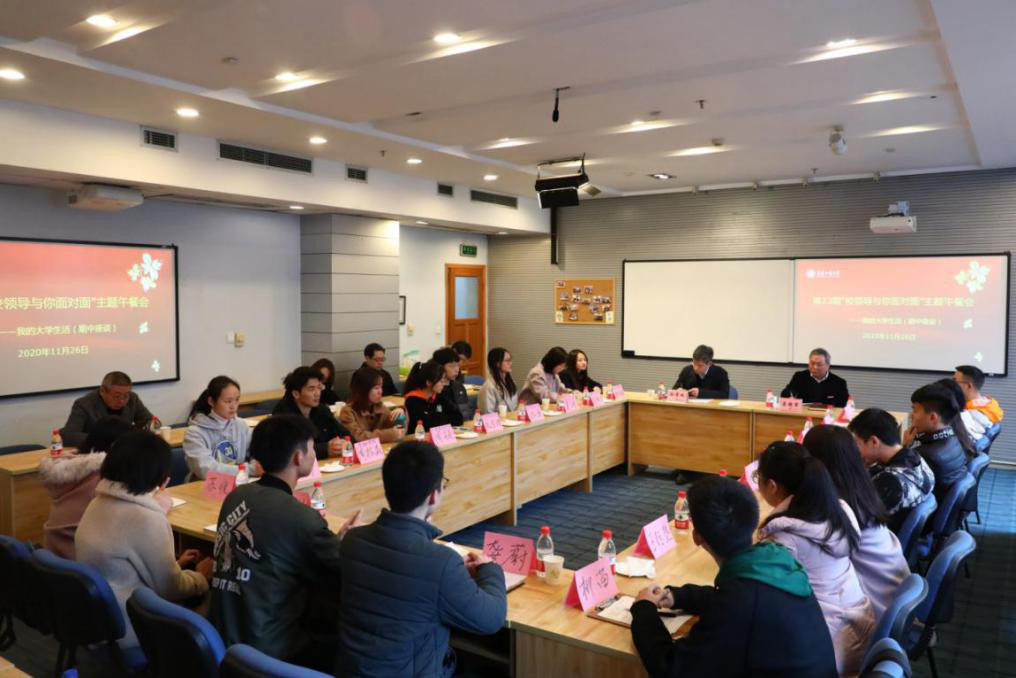 为进一步了解新学期开学以来同学们在校期间的学习生活情况,探索新形势下大学生成长成才的有效途径和方法,11月26日上午,365官网在南岸校区启智楼80412C会议室召开了以“我的大学生活”为主题的第23期“校领导与你面对面”期中学生座谈会。校长孙芳城,副校长李国军,以及相关职能部门负责人参加此次会议。会议由李国军主持。