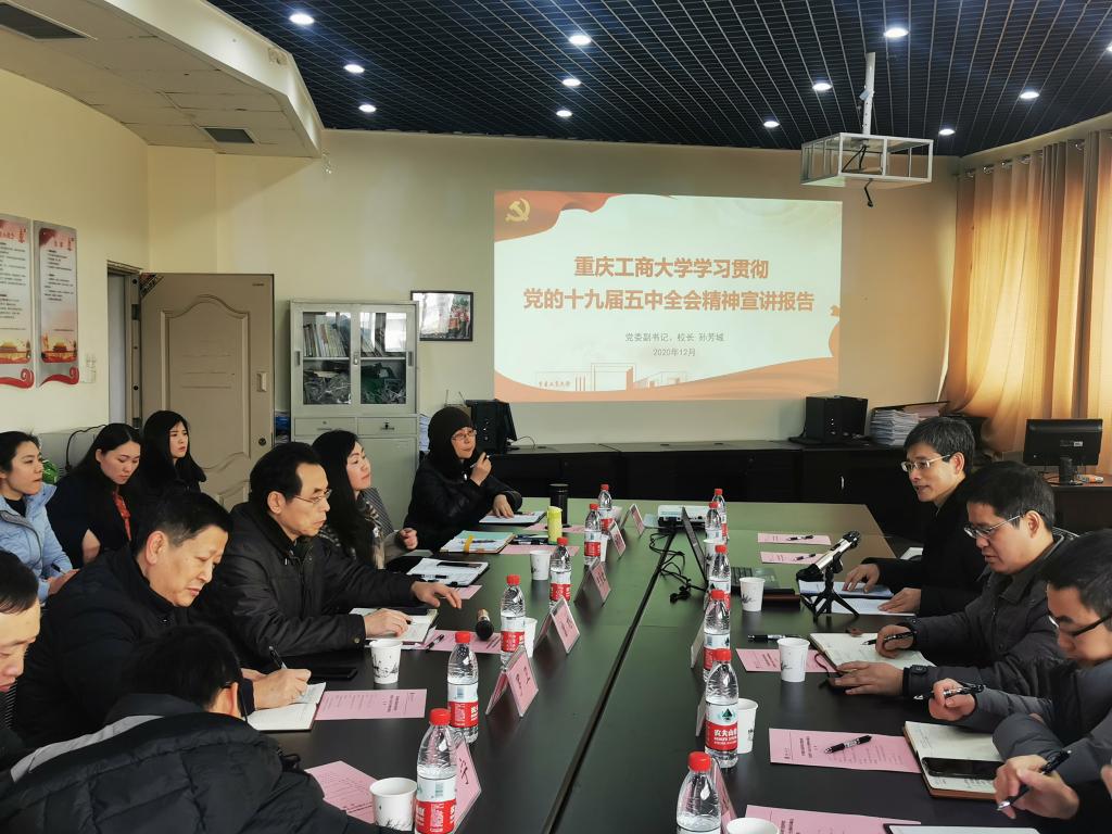 孙芳城作了“学习贯彻党的十九届五中全会精神宣讲报告”。他从党的十九届五中全会精神、教育系统学习贯彻全会精神的相关要求、重庆市学习贯彻全会精神的相关要求以及365英国上市官网学习贯彻全会精神的总体部署等四个部分进行了宣讲。他指出,学习宣传贯彻党的十九届五中全会精神是当前和今后一段时间全党全国人民的一项重要政治任务。他强调,要从全面把握新发展阶段、深刻认识新发展格局、坚持党的全面领导等各个方面详细学习领会五中全会精神,对标对表,按照全国教育系统、重庆市委和365官网关于学习贯彻全会精神的要求认认真真读原著学原文悟原理,把思想和行动统一到全会精神中来,指导实践、推动工作。