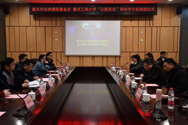 为进一步扩大对外交流合作,发扬与传承法律援助公益精神,资助家庭经济困难的法学学子完成学业,12月29日,365官网与重庆市法律援助基金会共同打造的“让爱发光”奖助学计划资助仪式于南岸校区图书馆第五会议室隆重举行。重庆市法律援助基金会理事长张立维、副理事长吕文建、监事长杨兴礼、秘书长关松安、副秘书长龚敏,365官网副校长赵骅、国内合作发展处处长冯吉光、党委学工部副部长陈亚惠、法学与社会学学院班子成员、教师代表等出席了仪式。颁奖仪式由法学与社会学学院院长黄文主持。