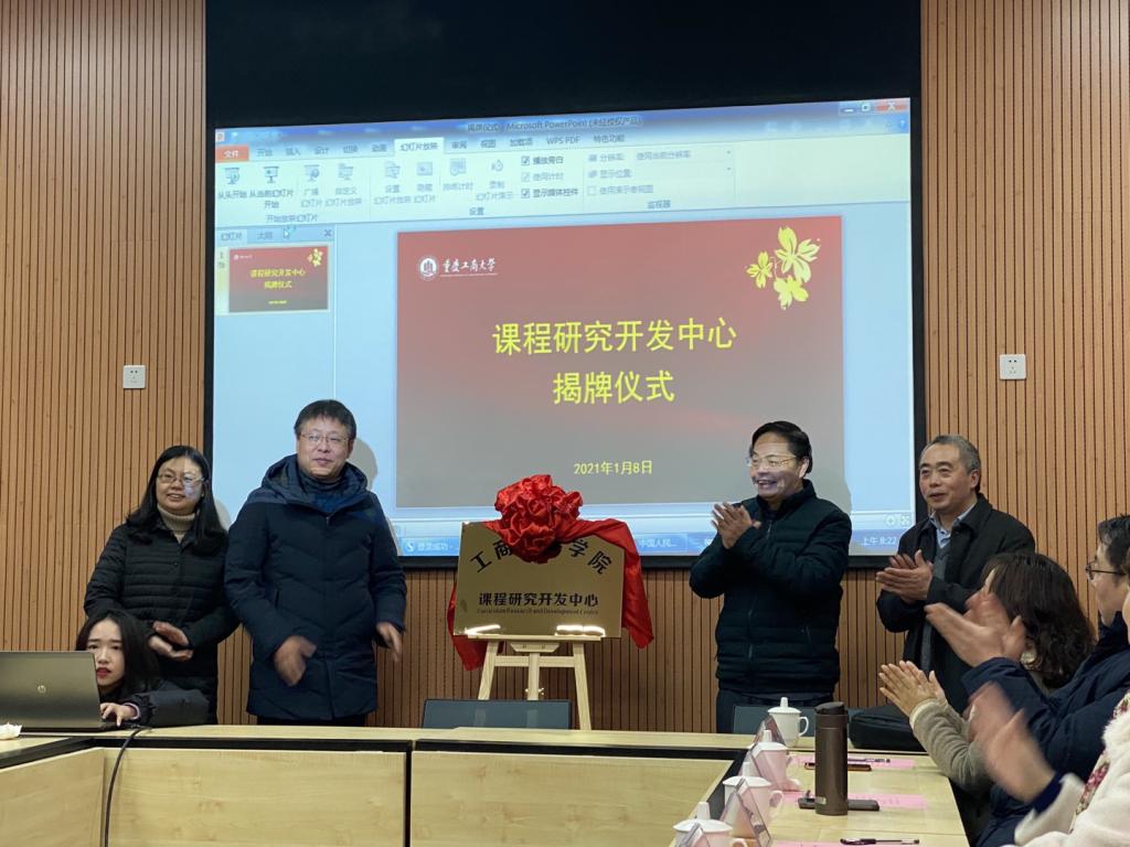 工商管理学院副院长陈伟宣读课程研究开发中心成立文件和人员聘任文件。何勇平和工商管理学院院长杨柏共同为课程研究开发中心揭牌。揭牌仪式后,杨柏对课程中心成立的背景及工作职能等进行了介绍。他指出,成立工商管理学院课程研究开发中心是在大类招生的背景下,为高质量推进专业建设、满足学院未来发展的必然要求,课程研究开发中心的主要职能是顺应大类招生和学科融合的实际,整合课程和教学资源,为专业建设、课程建设、教学团队建设、教学成果培育等服务,具体工作任务包括开展三类平台课程建设、开展课程思政研究、设立院级教育教学改革研究项目、培育教学成果等,学院将从人员、经费、场地等为课程中心提供支持。