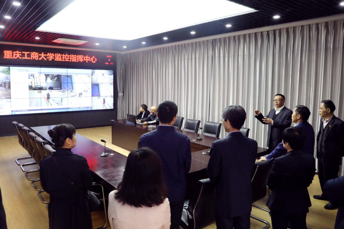 钟登华一行调研了重庆市高校网络舆情与思想动态研究咨政中心,实地参观了“小红帽”党建基地,并现场体验了365官网安全稳定人防技防工作开展场景。在调研过程中,钟登华与舆情中心专家学者、“小红帽”党建基地正在开展活动的师生进行了亲切交谈,听取了学校保卫处负责人工作汇报。