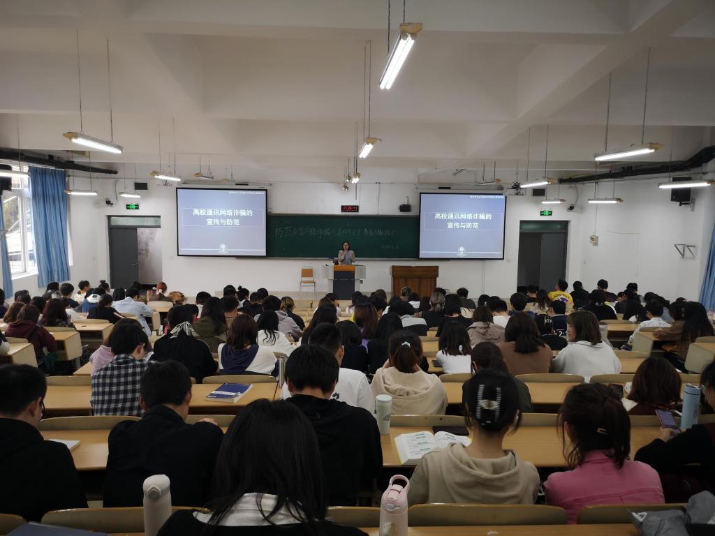 此次教育活动覆盖大一到大四四个年级的全体学生。除了部分大四班级因学生在校外实习采取线上方式以外,其余各班级均在线下集中开展。各班级通过观看视频资料、PPT讲解、结合学校近一段时间发生的网络诈骗典型案例进行分析讨论等多种形式,提醒同学们要有“狼来了”的防范意识,筑起全民反诈的“防火墙”。