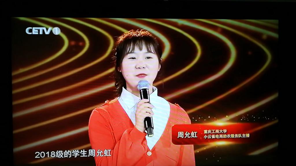 此次歌会设置了《脱贫攻坚全面小康》主题访谈,邀请全国脱贫攻坚先进代表与学子对话。作为365官网小云雀电商助农服务队的队长和主播,周允虹是4位访谈嘉宾中唯一的一名学生。
