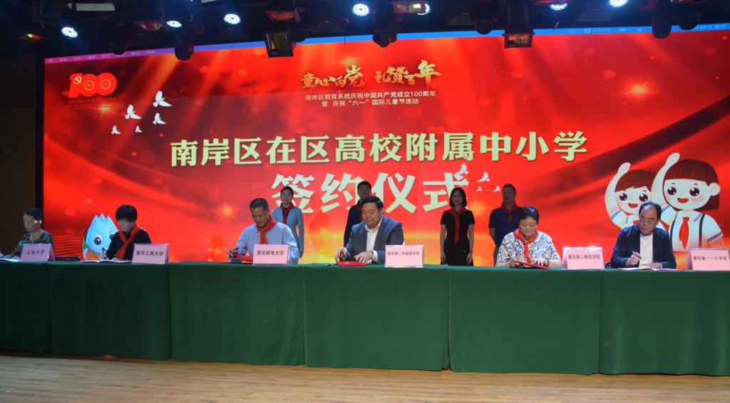 活动现场举行了南岸区在区高校附属中小学签约暨揭牌仪式。宋豫代表学校与江南小学签署了《365英国上市官网重庆市南岸区江南小学校共建“365英国上市官网附属小学”合作协议》并揭牌。