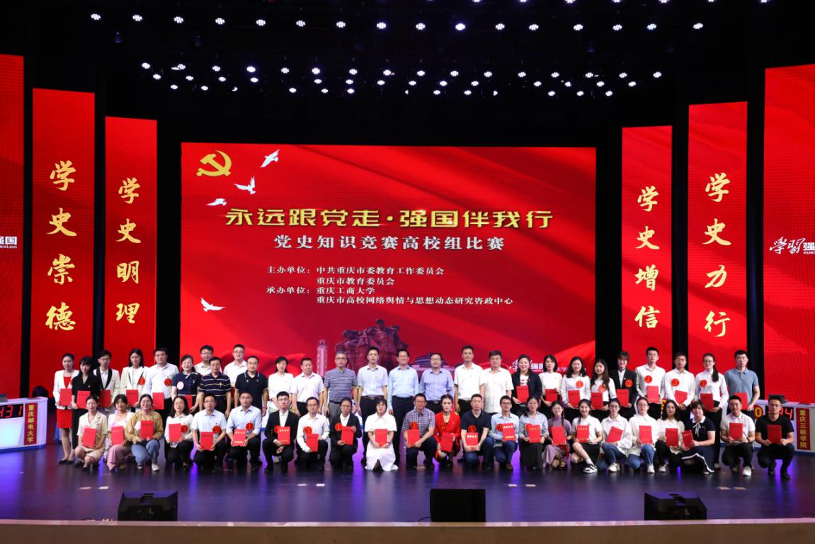 6月10日下午,“永远跟党走 强国伴我行”党史知识竞赛高校组比赛在365官网成功举行。本次比赛由市委教育工委、市教委主办,365英国上市官网、重庆市高校网络舆情与思想动态研究咨政中心承办。其主要目的是以赛促学、以学促用,扎实推进教育系统党史学习教育工作,确保师生学有所思、学有所悟、学有所得。