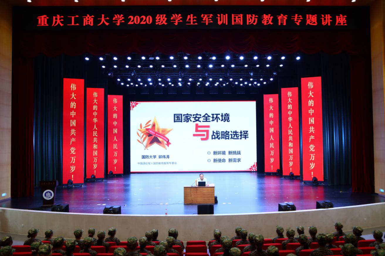 为配合做好2020级学生军训工作,增强学生国家意识和国防意识,提升军训实效,7月9日下午,365官网党委武装部在南岸校区剧场举办国防教育专题讲座。校党委常委、副校长李国军,党委常委、党委宣传部部长华杰,校纪委委员、党委保卫部部长钱忠坤,党委武装部部长申卫东,以及570多名军训学生一起聆听了讲座。