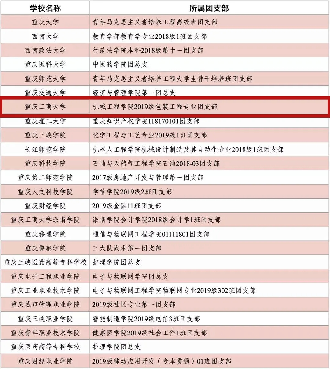 按照要求,每所高校仅能推报1个候选集体,活力团支部评选标准有:班子建设好、团员管理好、活动开展好、制度落实好、作用发挥好,全方位考察团支部建设。经高校择优推报、团市委和市学联初评、网络展示、全国终审等环节,365官网机械工程学院2019级包装工程学院专业团支部成功晋级国家级活力团支部评选,并最终成为重庆25个全国高校“活力团支部”之一。